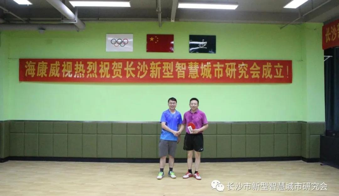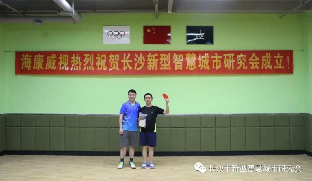 8月9日下午,为庆祝长沙市新型智慧城市研究会成立,以“盛夏燃情,乒出精彩”为主题的首届“海康杯”乒乓球联谊赛,在湖南冠能乒乓球俱乐部成功举办,比赛吸引了来自各大高校、市数据局、省直部门的专家学者和处长主任,共20余位乒乓球爱好者参加。